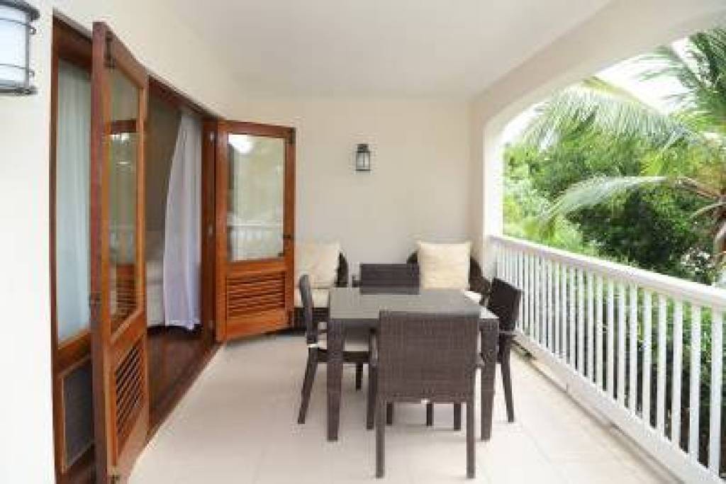With 900 sq.ft. of interior space, the one-bedroom apartment is generously positioned and fully furnished with high ceilings and French windows opening onto a wide wraparound terrace shaded and furnished for private relaxation. The apartment is located on the hillside in the second row back from the beach and it enjoys faboulous views.