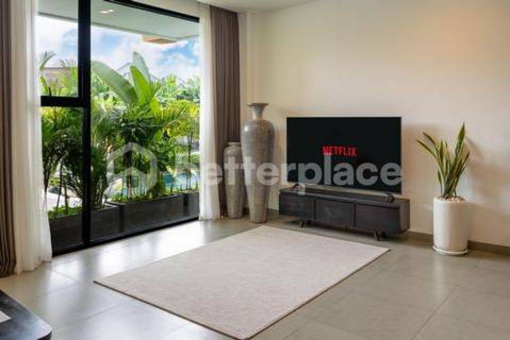 This modern 1-bedroom apartment in Berawa offers a comfortable and stylish living environment in one of Bali’s most sought-after neighbourhoods. The interior is designed with a clean and contemporary feel, featuring an open-plan layout that brings together the living, dining, and kitchen areas. Large sliding glass doors fill the space with natural light and provide a smooth connection to the outdoor greenery. The kitchen comes fully equipped with essential appliances, while the living room includes a cosy sofa setup and a TV for relaxing evenings. Neutral tones, modern furnishings, and thoughtful decor create a warm and inviting atmosphere suitable for both short-term stays and long-term living.