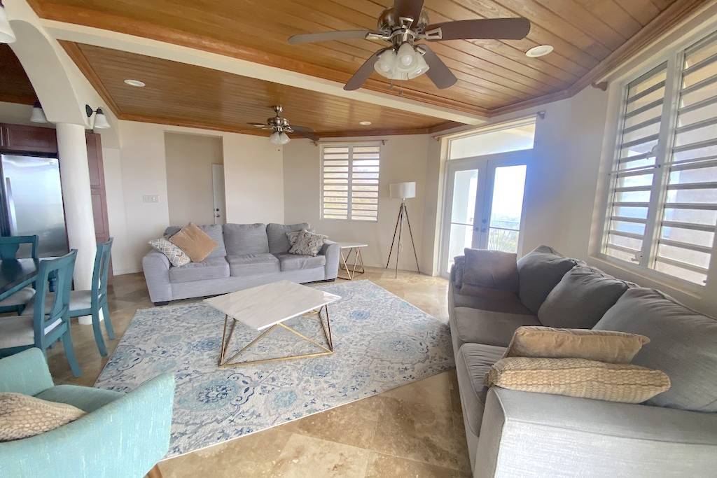 Beautifully finished 3 bed 3 bath apartment with spectacular views towards the Eastern Islands. Easy access to Road Town and to the ridge road. Spacious open plan kitchen/living area completely refurbished after Irma, opening out on to covered wrap around balcony.