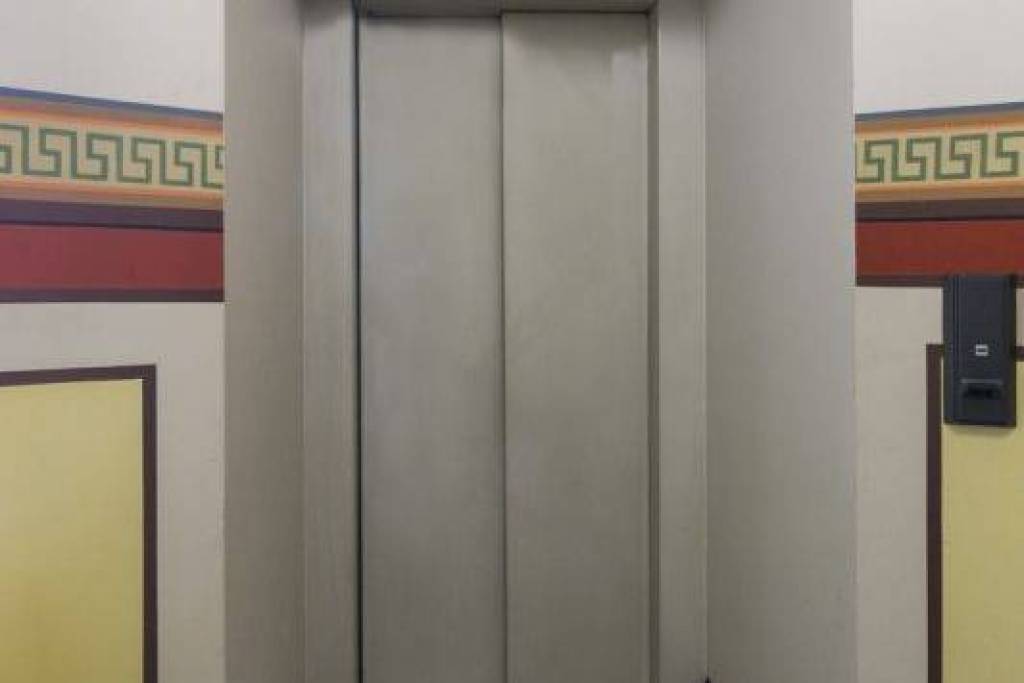 A 104.6 sq.m office is available on the 2nd floor with a view overlooking K. Barona Street. The layout includes three separate office rooms, a kitchen, two restrooms, and a storage room. The premises feature high ceilings and classic parquet flooring.