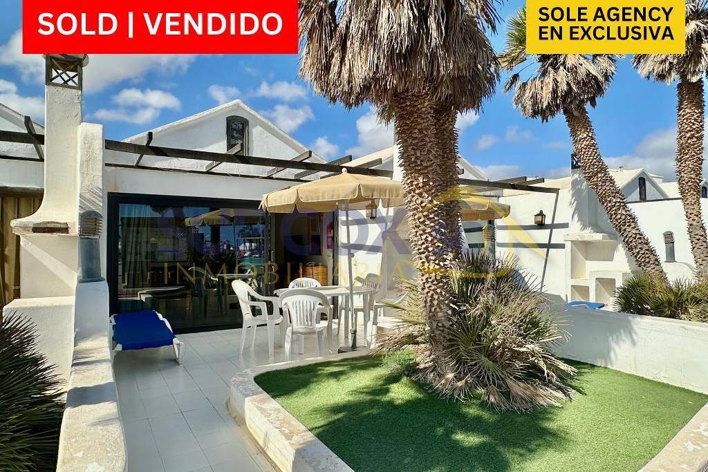 Sue Cox Inmobiliaria is pleased to offer for sale this well presented bungalow style property on the Sands Beach Resort in Costa Teguise. Located on the popular Plaza Sol, this bungalow comprises of a good size living/dining room with ceiling fan and pull down sofa bed hidden behind mirror fronted doors, separate fitted kitchen with dishwasher and fridge freezer, breakfast bar through to living area, bathroom has a bath with shower over, WC and bidet. Double wash hand basins set into marble surface with large mirror over. Large double bedroom with mirror fronted fitted wardrobes and ceiling fan. Sliding terrace doors from the living area open out to the sunny terrace offering pool views and a partial sea view. This property is currently part of the Sands Beach Rental programme. Sold furnished.