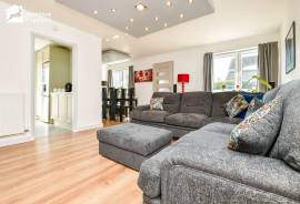 The accommodation briefly comprises a porch entrance, a spacious L-shaped living room with a dining area, a modern fitted kitchen with shaker-style cabinets and integrated appliances, three double bedrooms (two of which ar currently being used as home offices) and a stylish three-piece bathroom with a tub-shower combination, a hand wash basin and a WC.
