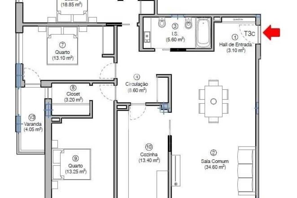 3 bedroom apartment with parking space - Quinta Santa Maria - Figueira da Foz