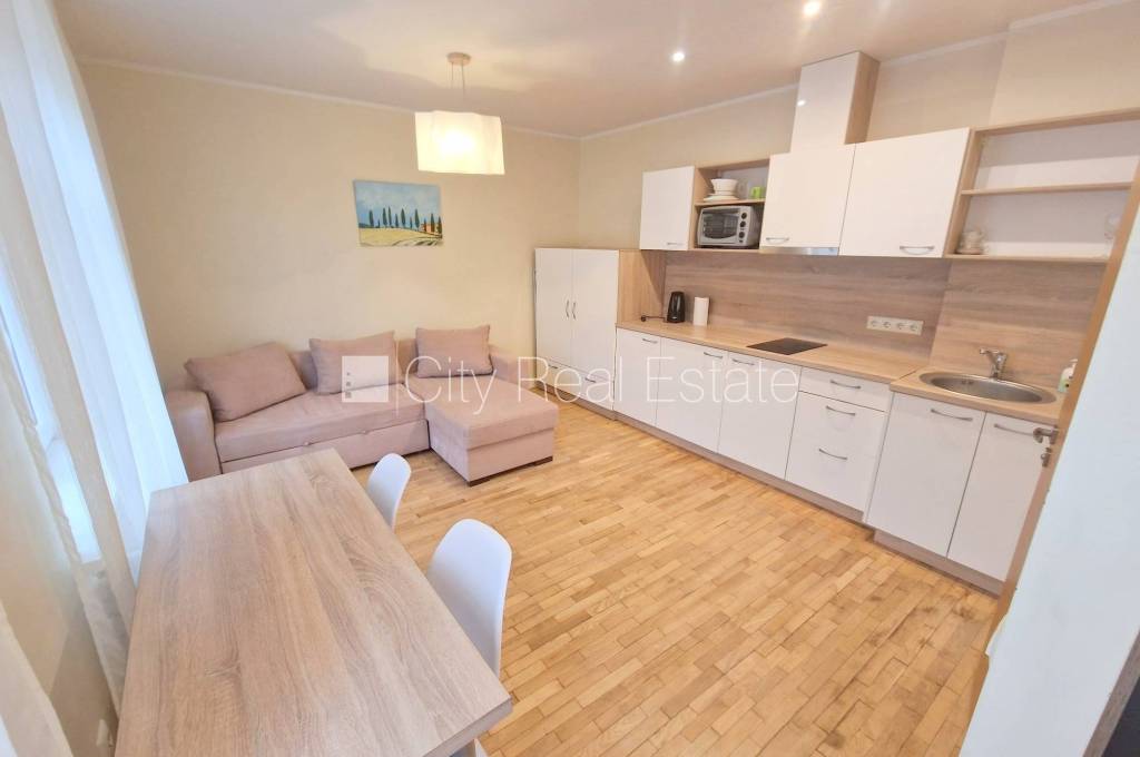 Latvia, Riga, Berzaunes street. Front building, renovated building, indoor courtyard, parking place, entrance from courtyard, staircase after capital renovation, windows are located on courtyard side, wide view from the window, studio-type kitchen combined with living room, central heating system, plastic glass windows, painted walls, new plumbing, laminate flooring, bathroom with WC, shower stall, toilet, build in kitchen unit, pullout corner sofa, table, chairs, wardrobe, refrigerator, electric range, steam sip-off machine, microwave , washing machine, locked staircase, for rent with all in pictures visible equipment, for one year, for two years, possibility to extend lease agreement, available, by signing rental agreement you have to pay for the first rent month as well as you have to pay guaranty deposit, if you choose this real estate, you have to pay agency transaction commission which is equal with one half (50%) of this real estate month rental payment, CITY REAL ESTATE ID - 517851