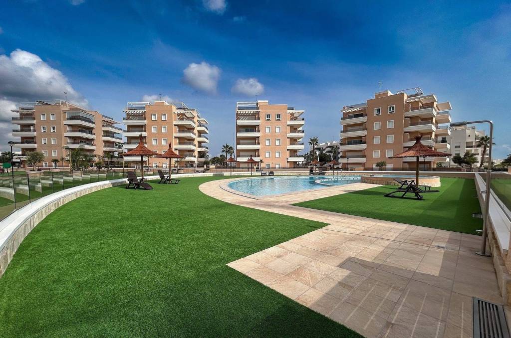 Discover this stunning, recently built, move-in-ready apartment in Vista Azul XXXVII Spa & Nature, a modern residential complex in the popular urbanisation El Raso. Enjoy spectacular panoramic views over the salt lakes, the peaceful natural surroundings, and the proximity to the golden beaches of Guardamar del Segura.LocationGuardamar del Segura is one of the most sought-after seaside towns on the Costa Blanca, famous for its long golden sandy beaches and warm, crystal-clear Mediterranean waters. The town retains an authentic Spanish charm, with cosy restaurants, a lively promenade, and a pleasant town centre where you can enjoy sun, sea and local gastronomy all year round.In the immediate area you’ll find shops, supermarkets, bars, restaurants, several golf courses and beautiful sandy beaches. The complex also borders a protected nature reserve, perfect for walking and cycling, and known as a resting spot for thousands of migratory birds, including flamingos.The complexVista Azul XXXVII is a gated residential community offering a wide range of facilities designed for relaxation and comfort:Large outdoor swimming pool with children’s pool and jacuzziWellness area with heated indoor pool and saunaOutdoor fitness areaChildren’s play zonePetanque courts and a putting greenBeautifully maintained green areas for peace and relaxationThe apartmentThe property is as good as new, having been very lightly used by the current owners.It’s ideal as a holiday home or for permanent living under the Spanish sun.Located on the second floor (with lift) and south-east facing, the apartment enjoys plenty of natural light thanks to large windows and a spacious terrace.The layout includes:A bright living room with sliding doors to the terraceA modern open-plan kitchen with built-in appliances and breakfast barThree bedrooms with fitted wardrobesTwo elegant bathrooms, one of which is en-suiteAdditional storage space in the hallway and on the terraceFeatures & extrasPrivate parking space in the underground garage (included)Storage room on the terrace with boiler and washing machineElectric shutters throughout the apartmentCentral air conditioning (hot and cold)Automatic sun awning on the terraceHigh-quality finishes and modern décorFurniture and decoration included in the price, making it completely move-in readyDon’t miss this opportunity to experience the Mediterranean lifestyle under the Spanish sun.Book your viewing today – this apartment truly needs to be seen!
