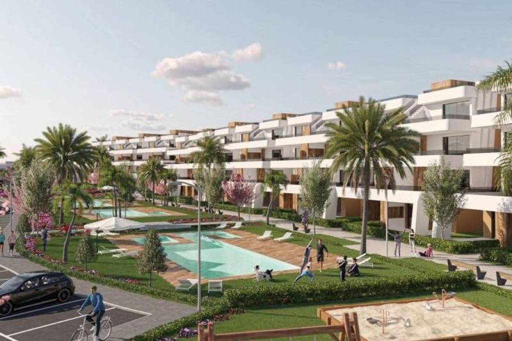NEW BUILD APARTMENTS IN CONDADO DE ALHAMA GOLF COURSE New Build residential complex of villas and apartments in Condado de Alhama. Beautiful 8 apartments are distributed between ground, first, second and third floor, with two properties on each floor and a lift to move from one to other level. There are a several community swimming pools, outdoor parking space for each apartment, storage area and terrace with Summer kitchen. The top floor properties have a solarium. The two ground floor apartments have 3 bedrooms and 2 fully-fitted bathrooms and the rest of the properties have 2 bedrooms and 2 fitted bathrooms as well. The properties have been designed with a contemporary style and an open planned concept, consisting of a fitted kitchen and a living-dining room. The development is located in Condado de Alhama, Murcia, within a luxury resort, with sports areas and surrounded by nature, all services, and several Golf Courses. The property will meet the highest standards and will be equipped with: Community swimming pools with ample green areas. Kitchen completely furnished and equipped with oven and microwave elevated and in column, integrated fridge and dishwasher, induction hob and extractor fan. Lighting: inside the property (dining room, kitchen, corridors and bathrooms), as well as in outdoor areas. Lined wardrobes with drawers and shelves. Fully fitted bathrooms with vanity unit, suspended toilet, mirror, wall-mounted shower and shower screens. Pre-installation for ducted air conditioning. Summer kitchen on the terraces. Solarium on the top floors. Outdoor parking space with storage area. Lift (from ground floor to 3rd floor). Condado de Alhama Golf Resort is a fantastic Golf Resort with many facilities and services . A shopping centre, a sports centre, a variety of bars and restaurants, supermarkets and over 25 communal swimming pools and gardens. Condado de Alhama Golf Resort has its own Jack Nicklaus designed golf course and is only 15 minutes from the beautiful beaches of Bolnuevo and Mazarron. Mazarron has over 35 km of coastline, much of which is unspoilt coastline. Numerous beaches in the Bay of Mazarron have been awarded the Blue Flag for their quality. Condado de Alhama Golf Resort is only 20 minutes from the new Corvera International Airport.