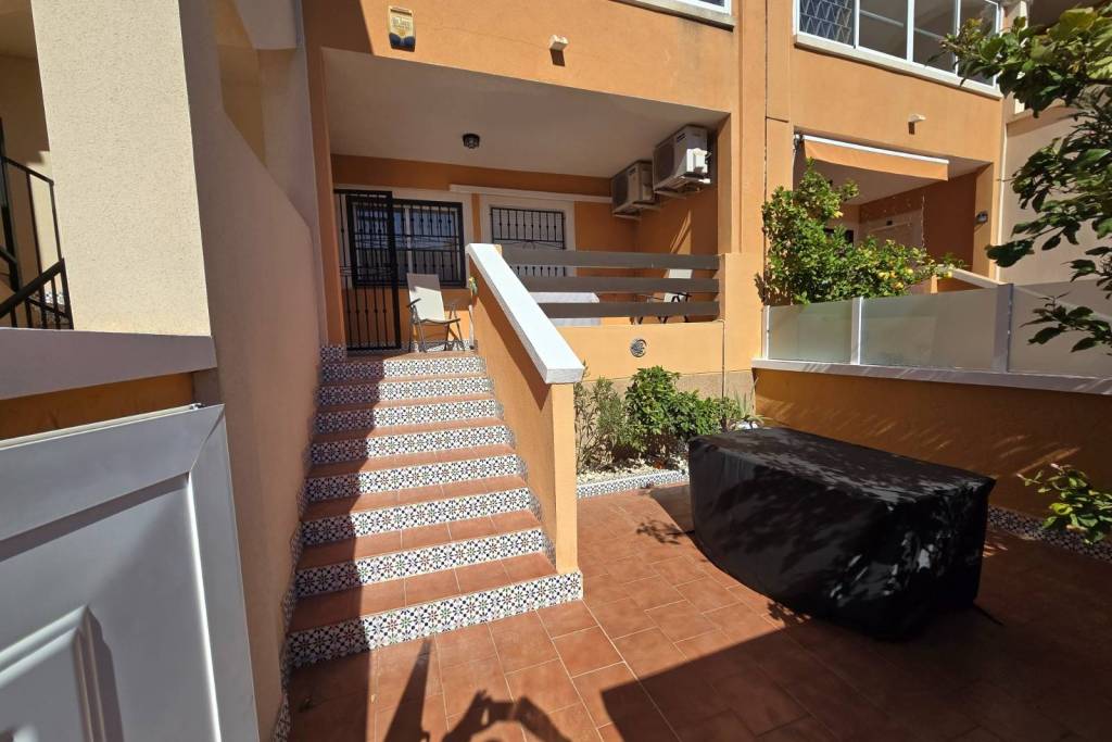 This South Facing, Two Bedroom, Ground Floor Apartment in Los Altos is located in a well-established residential area, just a 5 minute walk to Via Park 5, JYSK furniture store, a variety of café bars restaurants, and a main chain supermarket. The many amenities of the Orihuela Costa, including beaches, La Zenia Boulevard shopping centre, and several golf courses, can all be reached within a 10 minute drive, making this an ideal Costa Blanca South location. The property is accessed via a private front garden leading to a covered terrace, perfect for outdoor seating. Inside, the accommodation comprises a lounge/dining room, a separate fitted kitchen with a door leading out to a tiled patio area, two double bedrooms with built-in wardrobes, and both a family shower room and a bathroom, offering added convenience. Externally, the 19m² tiled front garden features planted borders, providing a pleasant and low-maintenance outdoor space. There is plenty of parking opportunity, along with the added benefit of a choice of two communal swimming pools. This well-located air conditioned ground floor apartment offers comfortable living and excellent access to amenities, making it ideal as a permanent residence, holiday home, or investment opportunity on the Costa Blanca South.