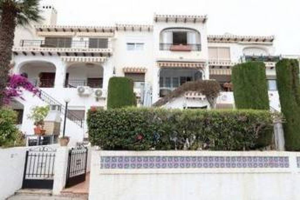 Beautifully refurbished south-facing duplex townhouse located on a residential cul-de-sac in Cabo Roig, within walking distance of the sea.. . This spacious property has a floor area of approximately 100 m2 and a private garden of approximately 50 m2 with a barbecue and oven, ideal for enjoying the outdoors all year round. It is part of a gated community with parking spaces and landscaped areas.. . One of its most interesting features is its layout on two floors with separate entrances and spaces that allow them to be used independently. By adding a kitchen on the upper floor, it could easily be converted into two separate homes, making it a very attractive investment option: rent out one part and use the other for living or holidays. . . It has a total of 4 bedrooms and 3 bathrooms. Layout:. . Ground floor: kitchen open to a spacious living-dining room with built-in cupboard and storage room, 1 bedroom and 1 full bathroom with shower.. . Upper floor: glazed terrace with glass curtains and unobstructed views, living-dining room with fireplace and air conditioning, 3 double bedrooms with fitted wardrobes and 2 full bathrooms with shower.. . Although the community does not have a swimming pool, there is a swimming pool a few metres away which can be accessed by subscription.. . A versatile, bright, spacious and well-located property, ideal as an investment, a permanent residence or to enjoy your holidays by the sea.