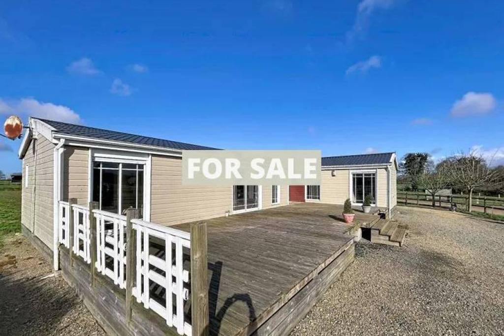 - Single-Story Detached Chalet House: with a fitted and equipped kitchen opening onto a living/dining room, a utility room, a bedroom with ensuite shower room, a hallway, a toilet, an office area, two bedrooms, and a bathroom with shower.