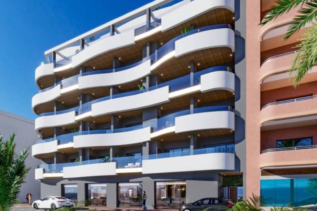 Nueva construcción de diseño vanguardista de cinco plantas en Torrevieja con 34 viviendas exclusivas ofrece una variedad de opciones de vida, desde elegantes apartamentos a áticos con impresionantes vistas panorámicas.