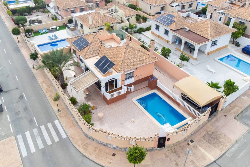 Esta preciosa villa independiente, modelo “Marina Villas”, con ✅123 m² construidos, se encuentra en la popular urbanización La Marina, en una zona muy solicitada, y ofrece una distribución cómoda combinada con espacios exteriores funcionales. La propiedad está situada en una ✅gran parcela en esquina de 527 m², a solo 5 minutos a pie de la zona comercial “Consum Square”, conocida por sus supermercados y una amplia variedad de bares, cafeterías, bares de tapas y restaurantes para todos los gustos.