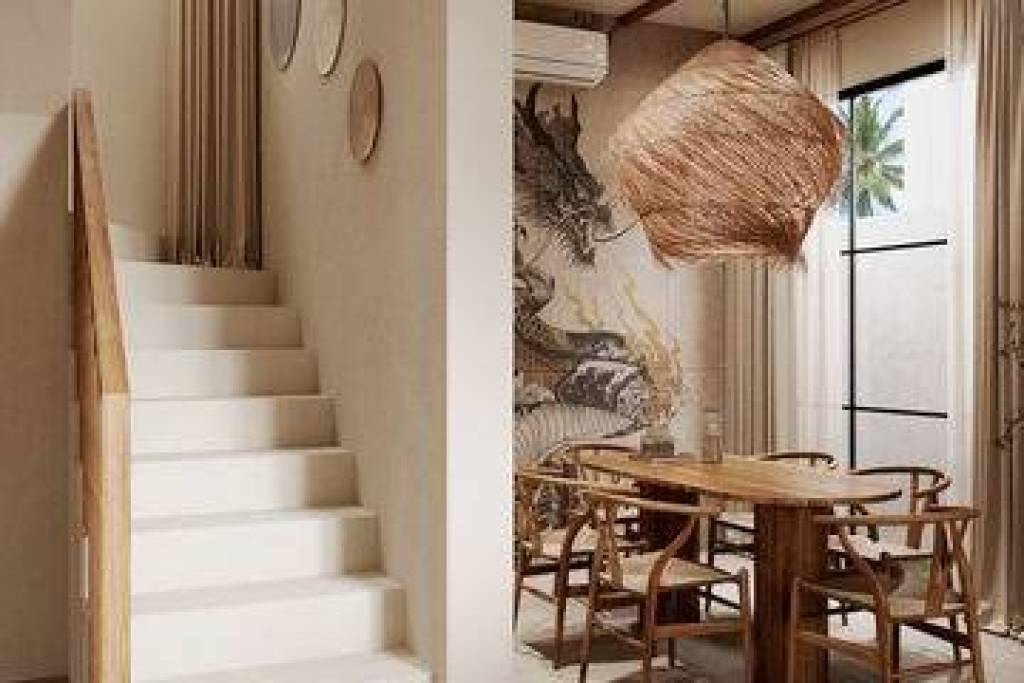 Set in Ubud, the cultural and artistic heart of Bali, this 2-bedroom villa combines tropical living with modern comfort. With 96.8 m² of building size on 140–141 m² of land, the villa features a bright open-plan living and dining area, a fully equipped kitchen with natural wood finishes, and two spacious bedrooms with en-suite bathrooms. The interiors are furnished in a warm minimalist style, with natural textures and custom details adding character throughout.