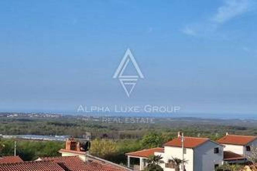 A very attractive building plot of 816 m² is for sale in Kaštelir, with an open panoramic view of the sea, the historic town and the surrounding Istrian landscape. The view is directly from the plot itself.