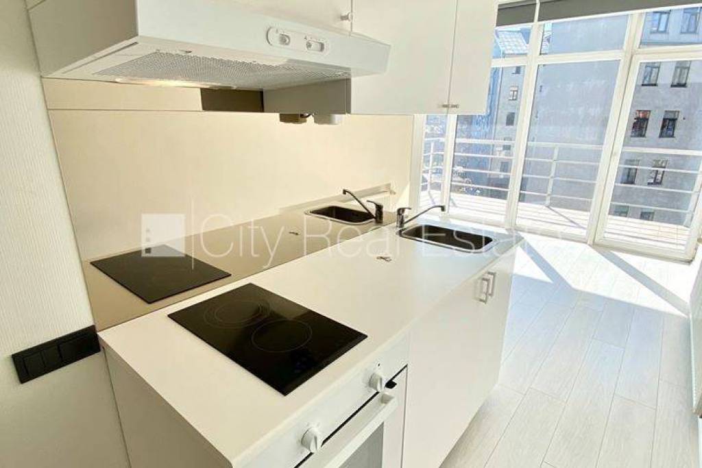 Latvia, Riga, Pernavas street. Newly constructed building , front building, indoor courtyard, entrance from street, elevator, staircase after capital renovation, balcony, windows are located on courtyard side, studio-type kitchen combined with living room, high ceiling , central heating system, full decoration, large show-windows, aluminum glass windows, painted walls, new plumbing, laminate flooring, flag flooring, bathroom with WC, shower stall, toilet, build in kitchen unit, refrigerator, electric range, oven, steam sip-off machine, washing machine, locked staircase, for rent with all in pictures visible equipment, available, by signing rental agreement you have to pay for the first rent month as well as you have to pay guaranty deposit which is equal one month rent payment, if you choose this real estate, you have to pay agency transaction commission which is equal with one half (50%) of this real estate month rental payment, CITY REAL ESTATE ID - 426396