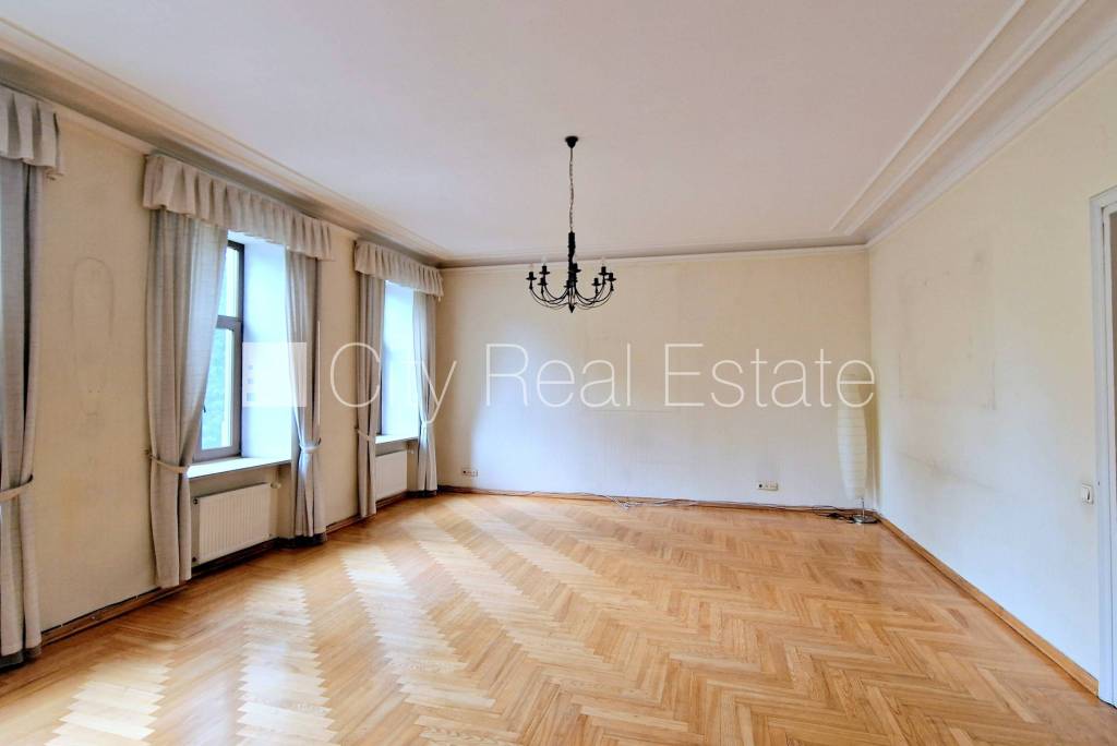 Latvia, Riga, Raina boulevard. Land is owned, front building, renovated building, changed roofing, well-maintained greened plot of land, indoor courtyard, possibility to rent an underground parking place, entrance from the street and from the yard, elevator, staircase after capital renovation, windows are located on the park side, wide view from the window, living room, kitchen, hall, workroom, high ceiling , fireplace, stove, gas heating, heating counters, independent calculation for heating, possibility to replan, full decoration, restored glass windows, changed plumbing , parquet flooring, new wirework, changed sewerage system, two bathrooms, bath, shower stall, build in kitchen unit, built-in wardrobe, optical internet, alarm system , locked staircase, available, till park 30 m, strategically beneficial location, till Old Riga 150 m, we help you to get a loan to buy this real estate, will help to get Residence permit in Latvia, CITY REAL ESTATE ID - 425093