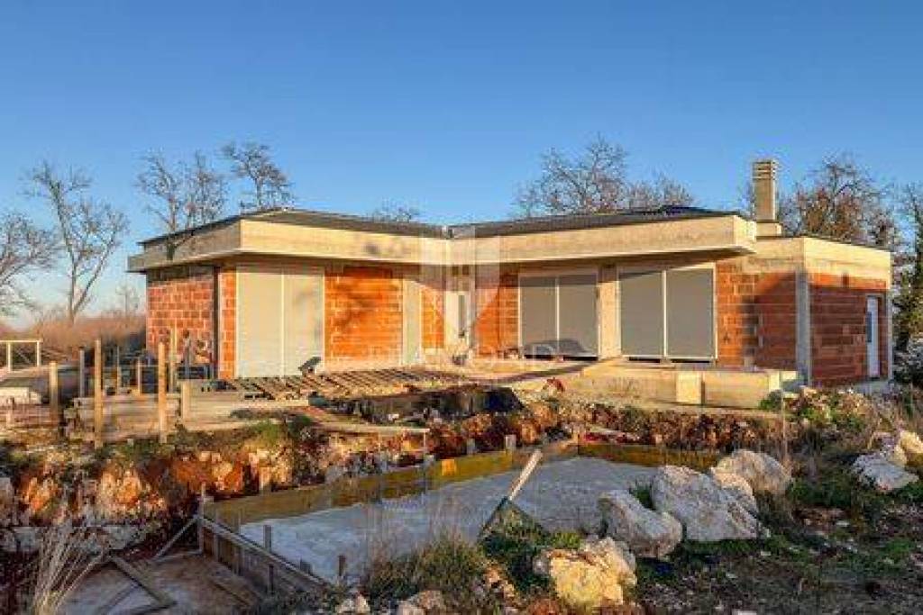 Near Pula, on the beautiful coastline of eastern Istria, in a quiet and attractive environment ideal for family living or tourist rental, a modern single-storey house in the Roh-Bau (unfinished) phase is for sale.