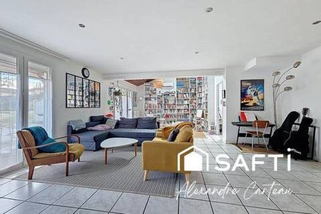 Sur la commune de Cénac à 5 minutes du bourg de Latresne. Maison de plain-pied de 152 m², située dans un secteur résidentiel calme, à proximité à pied du bourg et des écoles. La maison comprend une entrée, une grande pièce de vie avec coin bibliothèque, une cuisine équipée semi-ouverte, une véranda chauffée, une chambre parentale avec sa salle d'eau, 3 chambres supplémentaires, un bureau, une salle de bain, 2 wcs et un cellier/buanderie. A l'extérieur, coté rue un espace pour le stationnement et sur l'arrière de la maison, un atelier, un grand appentis couvert et un jardin. Le tout sur une belle parcelle sans vis à vis d'environ 900 m².<br />Photos supplémentaires, plans et visites virtuelles sur demande.