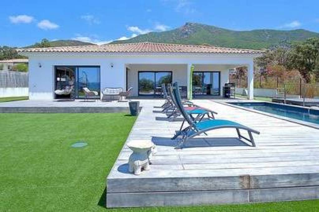 Belle villa de plain-pied sans vis-à-vis de 2022 climatisée avec piscine, jacuzzi, sauna-hammam avec vue Mer et montagnes, d'une superficie de 172 mètres carrés habitables environ, sur un terrain paysagé de 958 m². <br />Cette très agréable maison aux prestations soignées est composée d'un remarquable et spacieux salon-séjour donnant sur une grande cuisine ouverte entièrement équipée, pour un total de 80m².<br />Le tout est complété par une buanderie. <br />Pouvant accueillir confortablement une douzaine de convives, cet ensemble lumineux est prolongé par une grande terrasse couverte.<br />La partie nuit offre 4 chambres dont deux suites parentales, une salle d'eau avec double vasque, et un WC indépendant.<br />À seulement 15 minutes de l'aéroport d'Ajaccio, sa vue dominante sur la Baie d'Ajaccio et le Monte Gozzi vous offre un cadre de vie privilégié tout en bénéficiant des plages et commerces de Porticcio à 15 minutes de voiture.