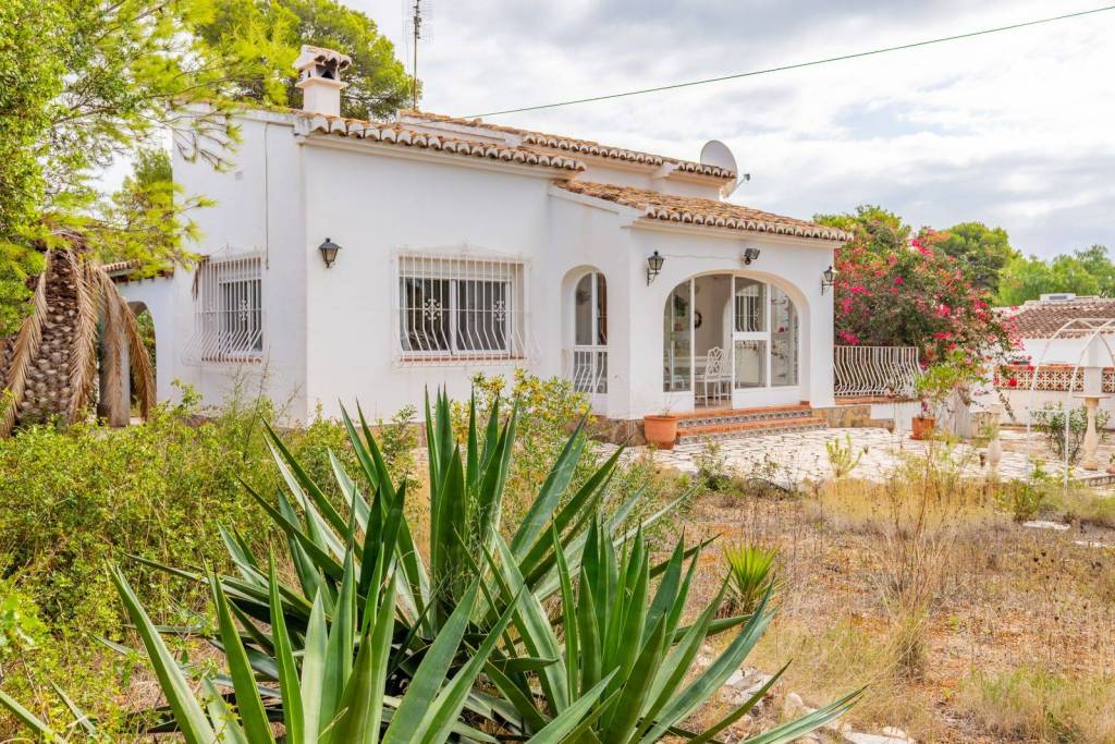 Located close to Moraira town, this villa for sale is situated in the Moravit area just a short walk to shops, restaurants and services. The property is distributed as two bedrooms, two bathrooms, a living and dining room with a fireplace, an independent kitchen, a terrace, and a small covered and glazed naya. Outside, there is a private garden, currently without a pool but with space to build one, a garage, and additional parking space. The property benefits from central heating.