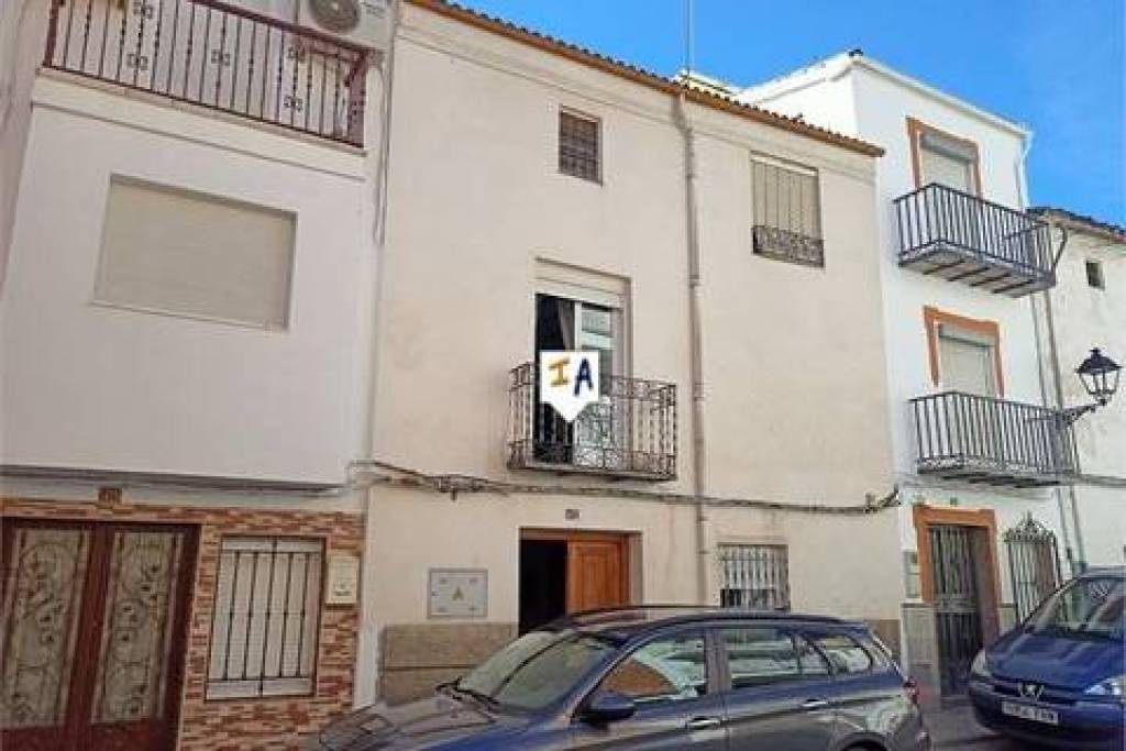 This 219m2 build 4 bedroom Townhouse is situated in the whitewashed Spanish village of Valdepenas de Jaen in the heart of the Sierra Sur close to popular Castillo de Locubin in the province of Jaen in Andalucia, Spain. Being sold part furnished for 45.000 euros the property is ready to move into and enjoy. Located on a quiet level street with on road parking right outside you enter the property into a reception area with a ground floor double bedroom on the right, ahead leads into a wide hallway with another double bedroom to the right. The hallway continues into a lounge with the fitted kitchen off to the right, a door at the rear of the lounge opens out into the private patio spaces with mature planting and storage. Stairs next to the kitchen take you to the large first floor landing with an office space and off which is access out to a private terrace, a fully tiled bathroom , a good size double bedroom and a large room currently used as a lounge with a separate dining area and a Juliet balcony. Also on this level are steps that lead to the second floor landing from where you have a twin bedroom and a large storage room.