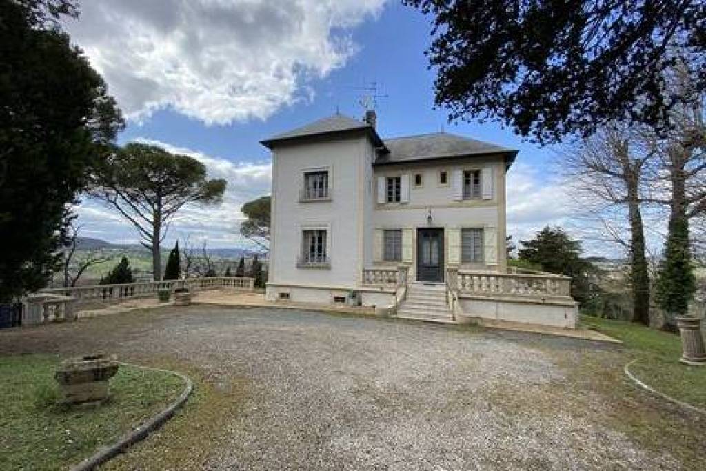 This large, comfortable house sits at the top of a hill in the medieval village of Penne d’Agenais with views across the Lot valley and 1.5 hectares of surrounding land. A unique position for a house with immense charm. Entrance with cloakroom 7.85sm, separate kitchen 12.93sm with direct access to the sitting room with fireplace. An attractive staircase leads up to the first floor where there are 3 bedrooms 17.67+16,37+14.65sm, dressing room 8sm, 2 shower rooms, bathroom. In the basement there are 2 rooms 11sm and a large space of 40sm with an antique bread oven. Further bedrooms could be added if required. Outside there is a charming hunting lodge which could be converted into a separate living space. Mains drainage. Garage 36sm. Please do not hesitate to contact us for further information or a visit.