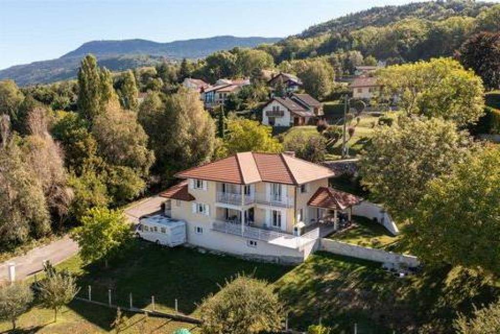 Located near the Swiss border, this upscale villa has a large and very bright living space on the ground floor with direct access to the outside with its large terrace overlooking the Geneva basin and the water jet.