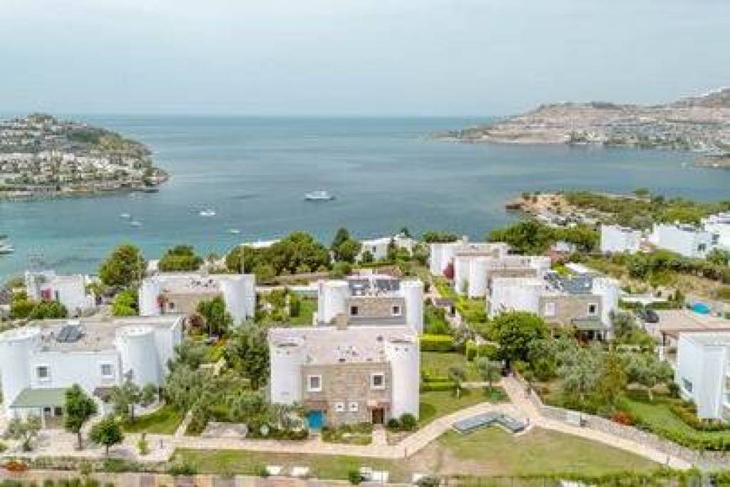 Three-bedroom, three-bathroom luxury villa with two garages, offering generous internal living space, open-plan interiors, expansive terraces, communal pool access, landscaped gardens, and direct beachfront access within a secure complex in Yalikavak, this villa is priced at an exceptional price of €1,050,000.