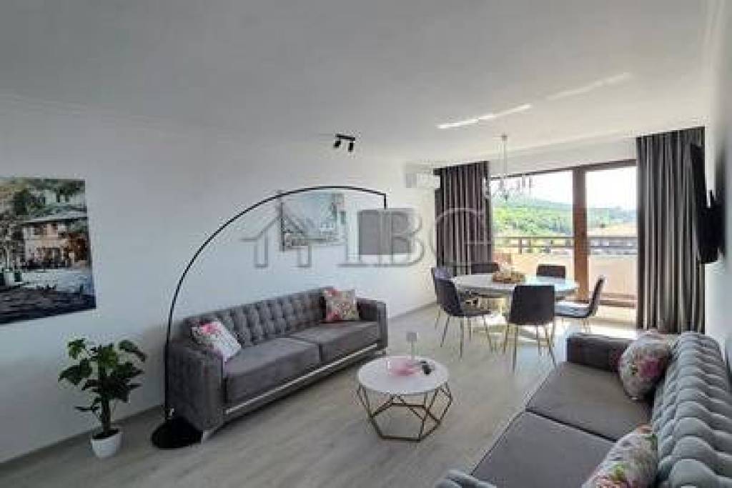 We are pleased to offer a beautiful, ready-to-move-in two-bedroom apartment of 101 sq.m in the luxury Etara 4 complex in Sveti Vlas. Located on the 5th floor, the apartment offers stunning views of the blue sea, green mountains, and the charming orange-red tiled roofs of the surrounding buildings.