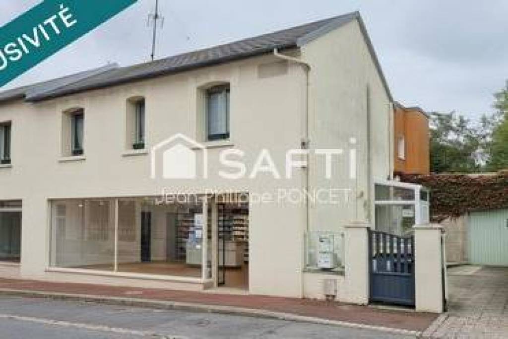 À découvrir, bel ensemble immobilier comprenant un local commercial rénové au rez de chaussée et un logement spacieux à l'étage, idéal pour allier activité professionnelle et habitation.<br /><br />Au rez-de-chaussée :<br />Un local commercial de 130 m², entièrement rénové, bénéficiant d'une vitrine de 12 mètres offrant une excellente visibilité.<br />Il se compose d'un accueil de vente de 65 m², d'un bureau, d'une réserve, de sanitaires et de divers espaces de travail ou de stockage.<br /><br />À l'étage :<br />Un logement de 120 m² accessible par un hall d'entrée et un escalier neuf, comprenant :<br /><br />Deux chambres et un bureau,<br />Une salle de bains avec douche,<br />Un WC indépendant,<br />Une cuisine,<br />Un vaste salon/séjour lumineux de 44 m².<br /><br />L'habitation bénéficie d'un garage, d'une terrasse, d'un jardin, d'une serre et d'une cave.<br />Les espaces d'entrée, l'escalier et le palier ont été récemment rénovés.<br /><br />Confort :<br /><br />Climatisations réversibles pour le local commercial,<br />Chauffage au fioul pour le logement (cuve 3 000 L).<br />Un bien rare, idéal pour un projet mixte habitation/professionnel ou pour un investissement locatif.