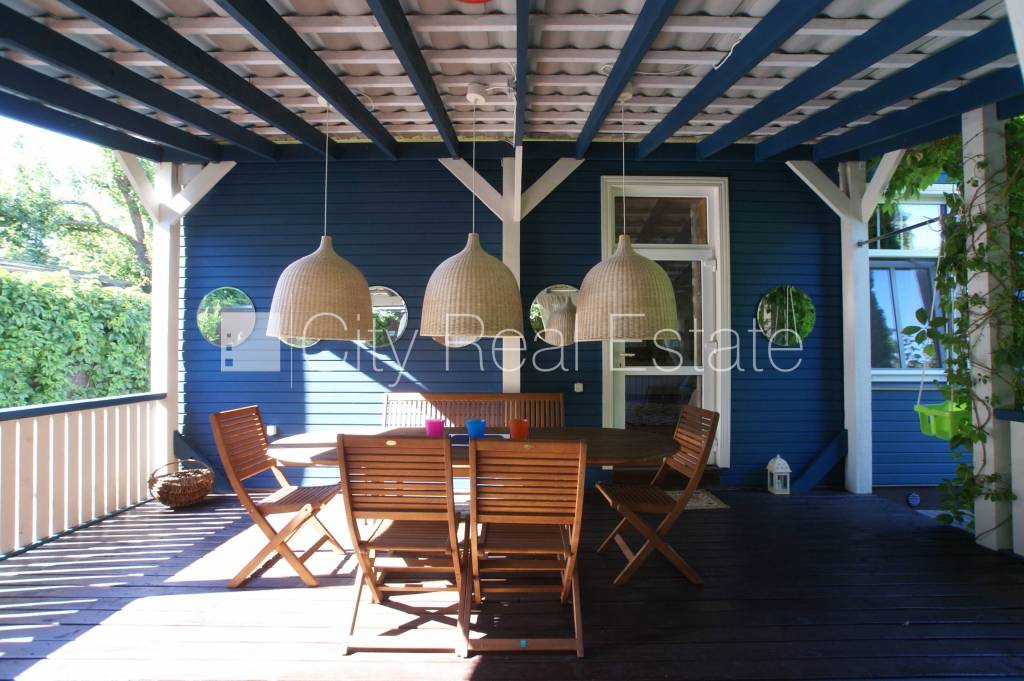 Latvia, Jurmala, Strelnieku prospekts. Well-maintained greened courtyard, precinct, terrace , bedrooms 2 piece/es, rooms isolated 3 piece/es, one communicating room, kitchen, fireplace, gas heating, number of bathrooms 1 piece/es, bath, build in kitchen unit, bed, double bed, kitchen table, reclining chairs, kitchen chairs, garden furniture, refrigerator, dishwasher, electric range, oven, steam sip-off machine, microwave , washing machine, internet, till sea 400 m, CITY REAL ESTATE ID - 427603