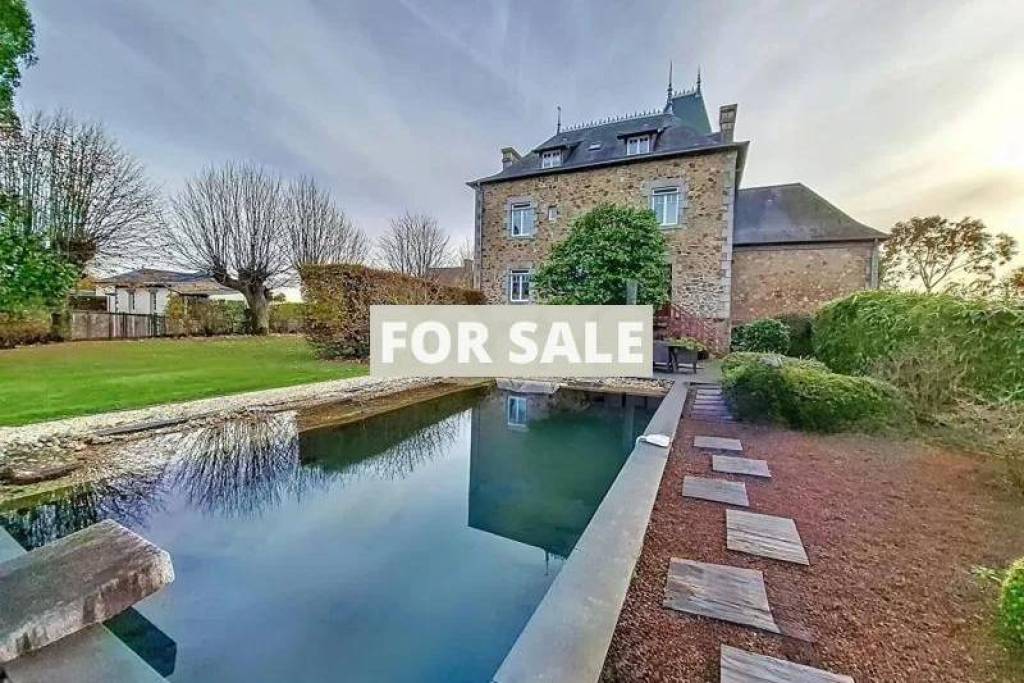 We present this superb 9-room house with a natural swimming pool in a quiet area of approximately 216 m2 living space and 4,624 m2 of land in the heart of the Bay of Mont Saint-Michel in Sartilly (50530). This is a mansion built in 1920 with 4 floors and a basement, completely renovated and redecorated with style in a contemporary style.