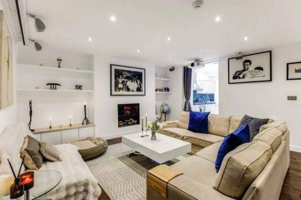 A stylish two double bedroom garden apartment with a private entrance and a versatile garden studio in an elegant period building. Accessed via a private patio, this beautifully presented home comprises an entrance hallway, an inviting and spacious well desinged living room fireplace, bespoke storage and a cinema screen, a well-appointed kitchen opening to a bright, dual aspect dining room with French doors out to the garden.