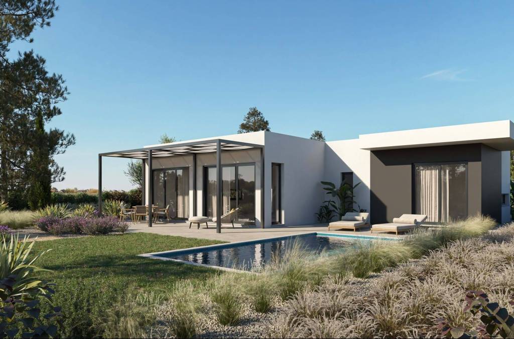 This villa develops comfortably on one story, and through its entrance we access the winter garden, which gives a lot of light, and views to the garden of the property. The fully equipped kitchen and with island is in open plan with the living room, which then accesses the outdoor leisure area, terrace and pool. A social bathroom supports the interior living area and access to the laundry can be done through the kitchen or exterior of this fantastic property.
