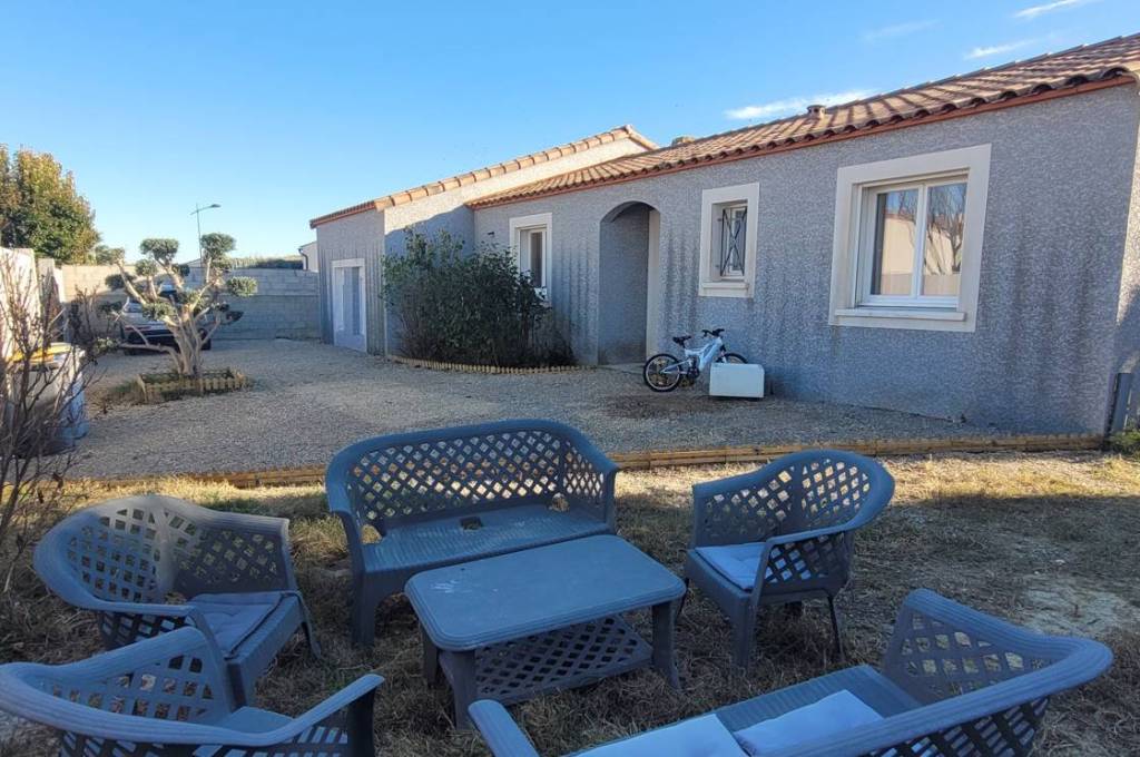 Large single-storey villa offering about 140 m2 of living space, set on 1000 m2 of land with a swimming pool. The house comprises an 85 m2 section with two bedrooms and a bathroom, and a second section of approximately 55 m2, a former garage that has been converted into three bedrooms, including a master suite.
