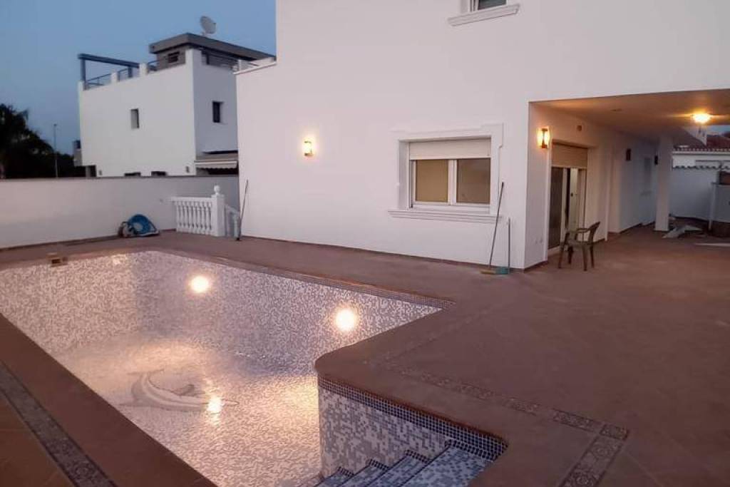 The Villa has a garage and parking, a private gated street, 2 accesses to the house and a private pool.