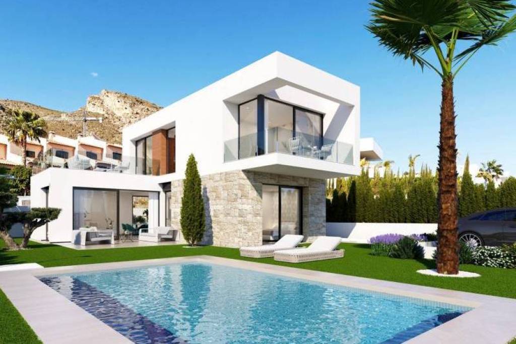 Luxurious New-Build Villas in Sierra Cortina, Finestrat Explore the elegant new development of independent villas in the exclusive neighborhood of Sierra Cortina, Finestrat. Nestled in a picturesque area close to Benidorm, these premium properties offer modern living spaces and top-notch amenities. With easy access to the Mediterranean coast, these villas are ideal for anyone seeking a blend of luxury, comfort, and convenience. Just 5 km from the vibrant city center of Benidorm, this development also places you within a short distance of major points of interest. Spacious and Modern Villas with 3 or 4 Bedrooms Each villa in this new development features 3 or 4 bedrooms and 3 luxurious bathrooms, creating ample space for family and guests alike. The heart of these homes is the open-plan living and dining area, connected to a sleek, integrated kitchen. This versatile space is perfect for family gatherings and entertaining, providing a cozy yet contemporary ambiance. Some units also include a basement area that can be customized into a gym, home cinema, or recreational area, offering endless possibilities for personalization. Advanced Home Automation and Energy-Efficient Design These villas are designed with the latest in smart home technology. Fully automated with a state-of-the-art home automation system, residents can control lighting, blinds, and air conditioning with ease. Safety is also a priority, with integrated flood and fire detection systems, a video intercom, and remote security features. To ensure energy efficiency, the villas make use of natural light, cross ventilation, wind protection, and water conservation features, reducing energy costs while maintaining a comfortable living environment. Private Outdoor Spaces with Pool and Landscaped Gardens Enjoy the Mediterranean climate with a private garden that serves as a personal oasis. Each villa features a private swimming pool, ideal for cooling off on warm days or hosting summer gatherings. The landscaped garden is adorned with natural grass and trees, supported by an automatic irrigation system, and has tasteful exterior lighting to create a relaxing atmosphere after sunset. Prime Location Near Benidorm and Key Attractions These villas in Sierra Cortina offer proximity to key destinations. The lively beaches of Benidorm are just 4 km away, and Alicante-Elche Airport can be reached in approximately 50 km. Golf enthusiasts will find several prestigious courses nearby, such as Villaitana Golf, just 3 km away. For shopping and dining, La Marina Shopping Center is within a 2 km drive, providing access to a variety of retail, dining, and entertainment options. Luxury Living in Sierra Cortina – Reserve Your Dream Home Today Discover a blend of elegance, comfort, and advanced technology in these new-build villas at Sierra Cortina. Don’t miss the chance to own a home in one of the most sought-after locations on the Costa Blanca. Contact us today to arrange a visit and experience the lifestyle that awaits you.