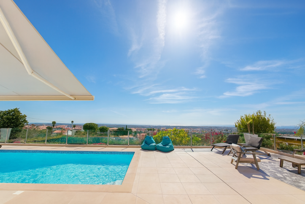 Electric awning on the pool terrace
