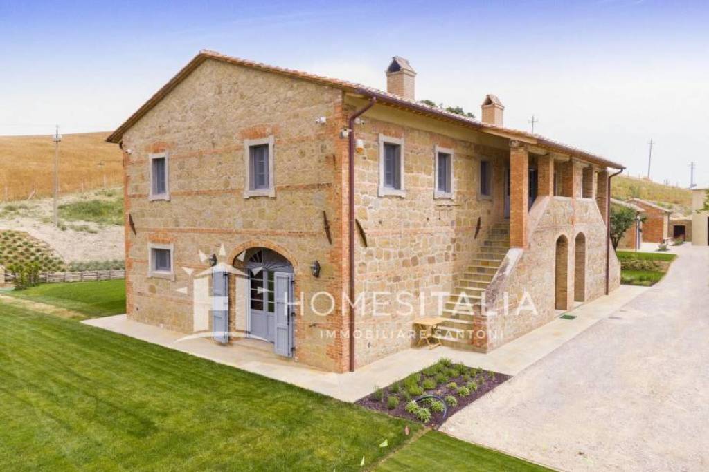 Nestled in the rolling hills of Val d'Orcia, a UNESCO World Heritage Site, this property is an immersive experience of Tuscan beauty, architectural authenticity, and modern elegance. This meticulously restored stone farmhouse seamlessly blends rustic charm with contemporary sophistication, offering 422 sq.m of living space across two levels, accompanied by an 81 sq.m guest house.