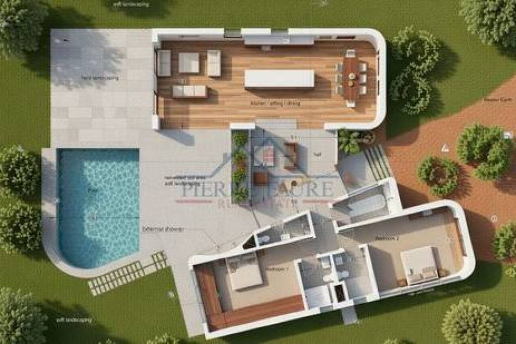 The proposed villa has been thoughtfully designed to provide spacious elegant living throughout. Upon entering one is welcomed by a grand and inviting hallway that sets the tone for the rest of the home. The heart of the property features a bright and expansive open plan kitchen living and dining area designed to maximise natural light and fully embrace the surrounding views through large apertures. This space flows effortlessly onto the outdoor pool and deck area creating an ideal environment for entertaining and relaxed family living.
