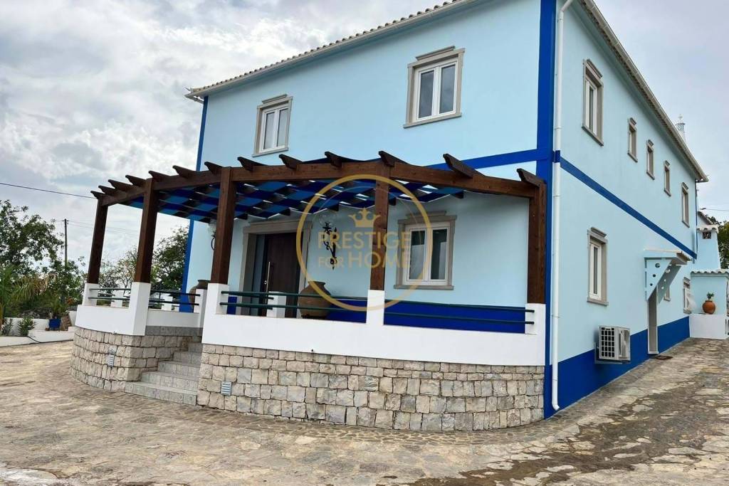 Renovated villa located less than 10 minutes from the city of Loulé. The property consists of three floors: the basement consists of two bedrooms, a bathroom, kitchen, cellar and a small pantry. On the ground floor there is a large living dining room with air conditioning and fireplace, a kitchen with pantry, a bedroom with air conditioning en suite and a bathroom. On the first floor we have three bedrooms, one of them en-suite, all with air conditioning, a bathroom, a large laundry room and a games room with fireplace. The villa also has a spacious leisure area, with barbeque, swimming pool with salt water with pre-installation of heating. Garden with automatic irrigation with water from the borehole (also has mains water and a large garage. Come and meet in order to understand the potential of this building. __