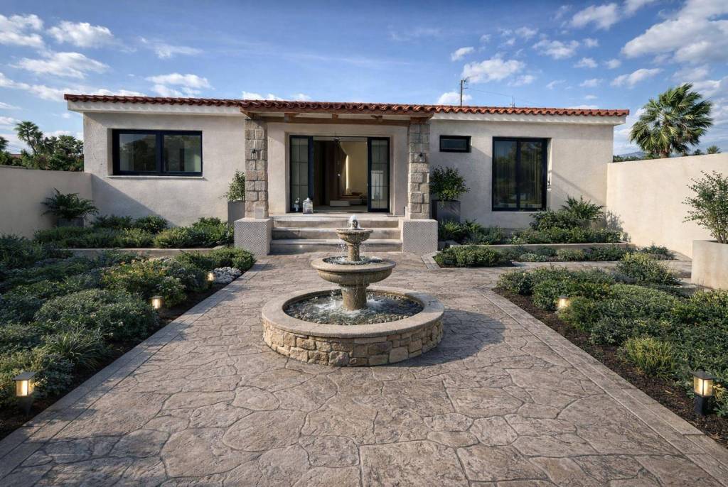 The attention to detail extends to the exterior, where the garden has been delivered fully completed with an automatic irrigation system, a decorative fountain, and a carefully studied LED lighting design throughout the grounds and stairs. In terms of logistics, the property offers a closed garage for two vehicles with an incorporated bathroom, as well as an exterior carport with space for two more cars.