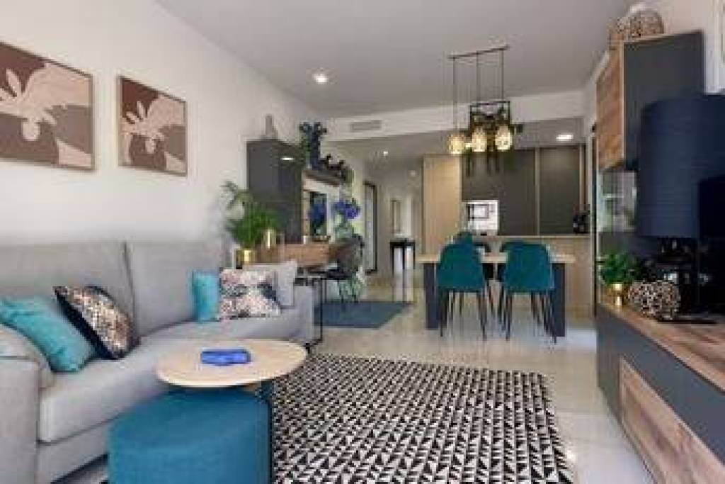 Descubre esta espectacular vivienda nueva a estrenar en el exclusivo residencial Amanecer Deluxe, ubicado en la codiciada zona de Playa Flamenca.~~Se trata de un amplio apartamento en planta baja que destaca por su impresionante terraza privada de aproximadamente 136 m2, ideal para disfrutar del clima mediterráneo todo el año, organizar reuniones al aire libre o simplemente relajarse con vistas despejadas al mar y a las zonas verdes.~~Características principales:~~3 dormitorios amplios, todos exteriores~~2 baños completos (uno de ellos en suite)~~Luminoso salón-comedor con acceso directo a la terraza~~Cocina moderna~~Vistas al mar y a jardines~~2 plazas de garaje incluidas~~Trastero incluido en el precio~~ Zonas comunes exclusivas:~~Amplias zonas verdes y ajardinadas~~Piscina comunitaria~~Parque infantil~~Gimnasio totalmente equipado~~Sauna~~Una vivienda perfecta tanto como residencia habitual, segunda vivienda o inversión, gracias a su amplitud, privacidad y excelentes prestaciones.