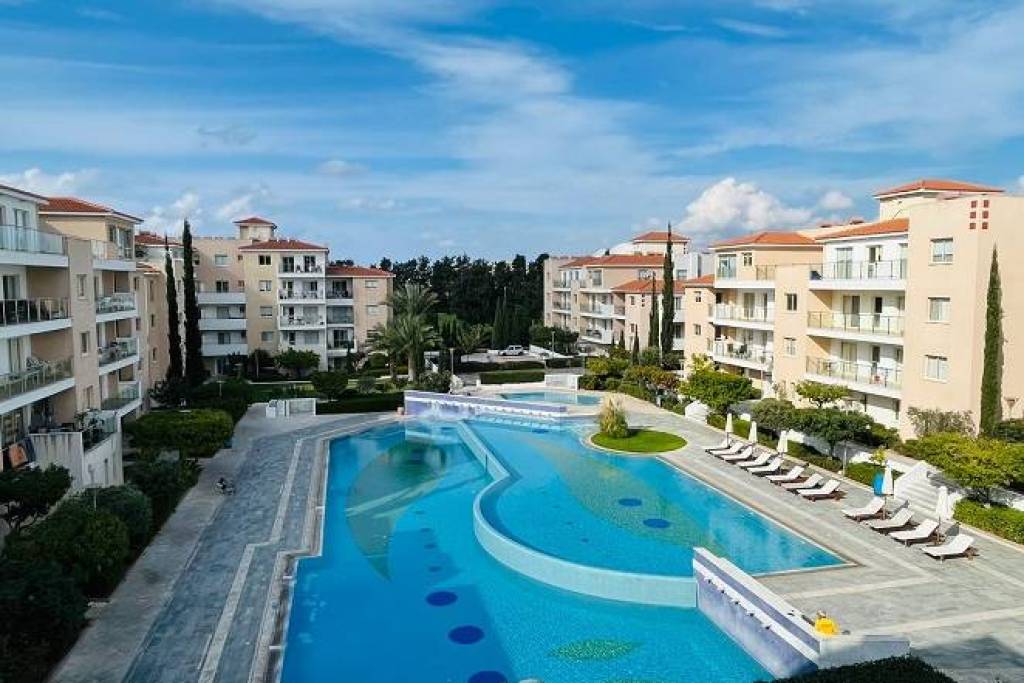 From the living area, patio doors open out onto a generously sized covered balcony of 16sqm, where residents can enjoy beautiful views of the project's swimming pool and landscaped gardens. The apartment comprises three large bedrooms with fitted wardrobes, including a master bedroom with en-suite facilities, while a well-appointed family bathroom serves the remaining rooms.