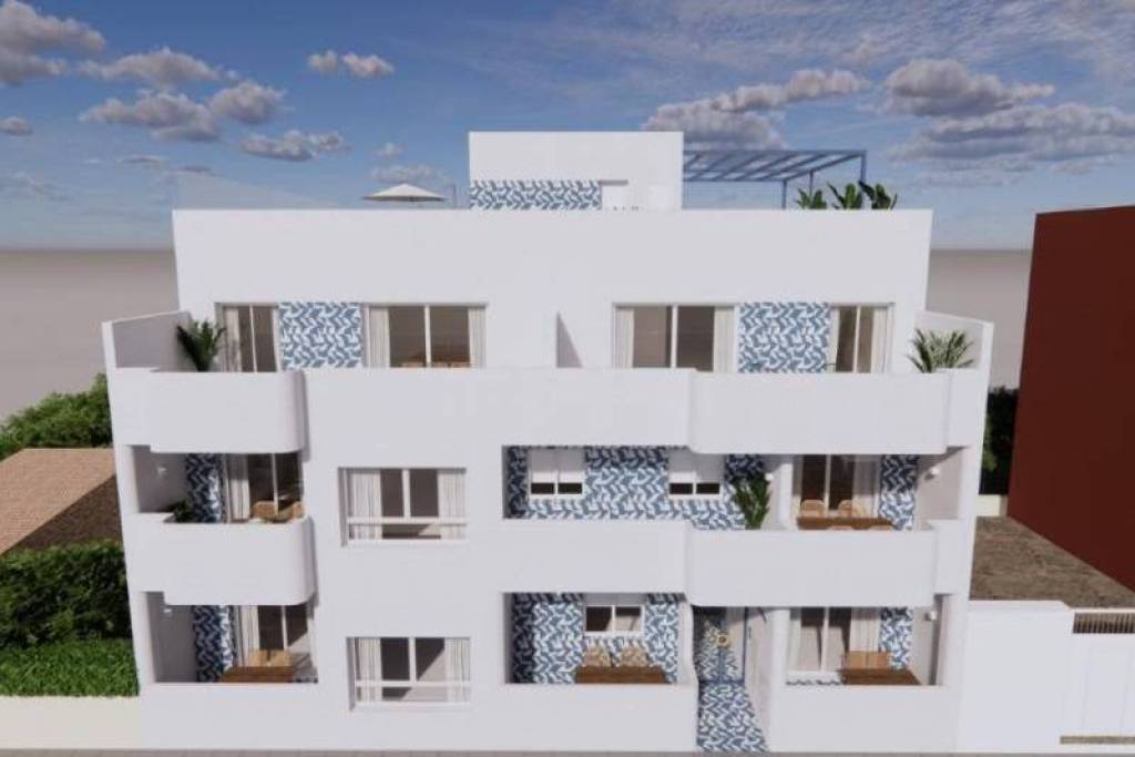 New Mediterranean apartments just 140 metres from the beach in Torre de la Horadada Exclusive seaside living on the Costa Blanca Discover this new residential project in Torre de la Horadada, ideally located just 140 metres from the sea, between El Conde and El Puerto beaches and next to the marina. This exclusive development comprises just 8 modern Mediterranean-style apartments, offering a unique combination of coastal charm and contemporary comfort in one of the most sought-after locations on the southern Costa Blanca. Located in a quiet and picturesque coastal village, these homes are surrounded by essential amenities such as supermarkets, restaurants, cafés and shops, all within walking distance. The area is known for its relaxed atmosphere, crystal clear waters and family-friendly environment. Elegant design and quality finishes Each apartment has 1, 2 or 3 bedrooms and 1 or 2 bathrooms, carefully designed to maximise space and natural light. The interiors feature: Security entrance door for peace of mind Fitted wardrobes in the bedrooms, fully lined and finished Modern bathrooms equipped with furniture, mirrors and shower screens Pre-installation of ducted air conditioning for year-round comfort These high-quality finishes create bright and functional spaces, perfect for both permanent residence and holiday use. Roof-top solarium with swimming pool and chill-out area The highlight of this development is the communal roof-top solarium, which is accessible by stairs or lift. Residents can enjoy a roof-top swimming pool, an outdoor kitchen area, barbecue and pergola-covered dining areas, and a sunbathing area with artificial grass. This exclusive rooftop oasis is the perfect place to relax under the Spanish sun. Prime location and excellent connections Torre de la Horadada is known for its stunning coastline, marina and lively promenade. The development offers easy access to nearby destinations: Beaches: 100 m Lo Romero golf course: 7 km San Pedro del Pinatar: 5 km Murcia-Corvera Airport: 40 minutes (55 km) Alicante Airport: 55 minutes (75 km) The beach house of your dreams awaits With its unbeatable location, elegant design and exceptional community amenities, this new boutique residential project in Torre de la Horadada is the perfect opportunity to enjoy the Mediterranean lifestyle. Contact us today to arrange a viewing and secure your new home just steps from the sea on the Costa Blanca.