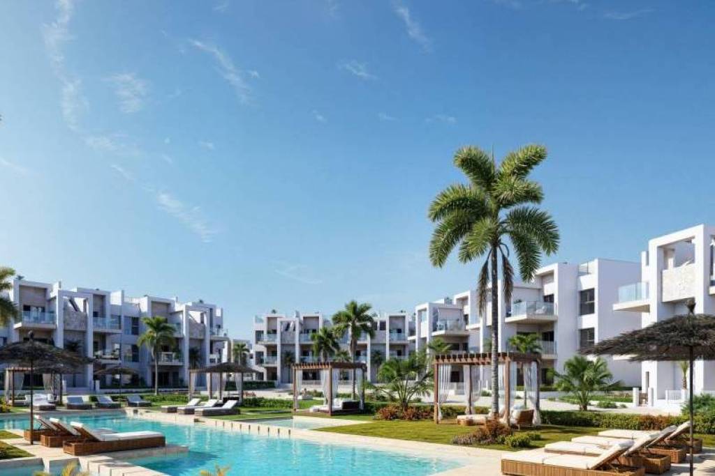 New Build Resort Apartments at La Serena Golf-Los Alcazares Near the Beach Modern Golf Front Living on the Costa Calida Discover this exclusive new build residential resort located at La Serena Golf in Los Alcazares. This contemporary development features 66 stylish apartments with 2 or 3 bedrooms and 2 bathrooms, one of them en suite, designed to offer comfort, elegance and an exceptional Mediterranean lifestyle just 300 meters from the Mar Menor. Los Alcazares is a charming coastal town known for its relaxed atmosphere, sandy beaches and long seaside promenade. With more than 300 days of sunshine per year, the area offers a perfect environment for outdoor living, water sports and golf. The town also provides a wide selection of restaurants, shops, marinas and sports facilities, making it a highly desirable destination for both permanent residence and holiday homes. Apartments with Terraces, Gardens and Private Solariums The residential complex offers several property types to suit different lifestyles. Buyers can choose between ground floor apartments with private gardens, middle floor homes with spacious terraces or penthouses with terraces and large rooftop solariums. The solariums include an outdoor shower and offer the option to add a summer kitchen and private jacuzzi, creating an ideal space for relaxation and entertaining while enjoying open views of the golf course and surrounding landscape. Each home has been designed with bright interiors and open plan living spaces that connect seamlessly with the outdoor areas. Resort Style Amenities and Exceptional Communal Areas One of the most distinctive features of this development is its resort style concept. Residents can enjoy a spectacular lagoon style swimming pool of approximately 190 m2 with beach style access and relaxing areas with Balinese beds. Additional communal facilities include landscaped gardens, a spa area, gym and sauna located in the basement level. The complex also offers a children playground, two petanque courts and communal restrooms near the pool area, creating a welcoming environment for residents and guests. Quality Finishes and Modern Features The apartments are built with modern materials and high quality specifications designed for comfort and style. Fully equipped kitchen with white glass finish appliances Bathrooms with vanity units, shower screens and backlit mirrors Motorized window shutters Basic lighting package Fully installed ducted air conditioning Underground parking space for each property Underground bicycle parking and optional storage rooms Prime Location Close to Beach and Golf Mar Menor beach 0.3 km La Serena Golf next to the development Los Alcazares town center 2 km Cartagena 22 km Murcia 40 km Region de Murcia International Airport 30 km Alicante Elche Airport 90 km The calm and shallow waters of the Mar Menor are ideal for swimming, sailing and paddle surfing throughout the year. Secure Your Home at La Serena Golf Resort These modern apartments combine beachside living, golf views from most units and resort style amenities in one of the most attractive areas of the Costa Calida. Contact us today to receive more information or arrange a visit and secure your new home in La Serena Golf-Los Alcazares.