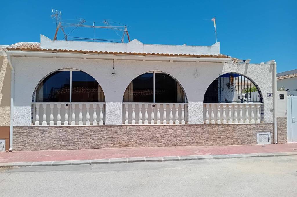 Located in the friendly and well-established community of Camposol, just 15 minutes from the beautiful beaches of Bolnuevo and the vibrant Port of Mazarrón, this 2 bedroom, 1 bathroom villa offers fantastic value and real potential — an ideal opportunity for retirees, holidaymakers, or those looking to relocate to the Spanish sunshine. The property sits on an ample plot and includes, lots of areas to enjoy various times of the day, from the roof terrace, back terrace, cosy front terrace, it also has a great workshop/tool shed, a laundry room and freezer space. The property has a full water filtration system, to purify and ensure quality at all times. The property is Air Conditioned (hot and cold) and has lots of ceiling fans creating plenty of air flow. Heating is provided by a fixed pellet burner, so it's cosy as toast in the winter. A glazed-in front terrace creating a winter lounge room or large indoor dining area, perfect for gatherings. This has all been renovated over time and offers an amazing blank canvas for new residents to move in and start living the dream. One of the standout features is the expansive rooftop solarium offering spectacular 360-degree views of the surrounding mountains and countryside. There is ample space to create a barbecue/outside kitchen and entertaining area with already constructed gazebo with new covers making it an ideal spot for enjoying long, warm evenings with friends and family under the Spanish sky. In addition to the large roof terrace is a large back terrace that is a lovely bistro style for al fresco dining and a jacuzzi, which is included! A lovely private space to enjoy a bottle of bubbles and a cosy dinner. This property is situated on a family friendly street that boasts a real sense of community and friendliness. Camposol is a popular choice among UK and European expats, offering a great sense of community, local amenities including shops, restaurants, medical services, and even a golf course. The urbanisation is conveniently situated just a short drive from the main motorway network, providing easy access to the cultural cities of Murcia and Cartagena, both under an hour away. This is a well-priced property that ticks all the boxes for those seeking lifestyle, location, and long-term potential. Whether you're looking for a holiday home, permanent residence, or an investment in the Spanish property market — this villa is not to be missed. Early viewing is recommended – As this potential don’t stay on the market for long.