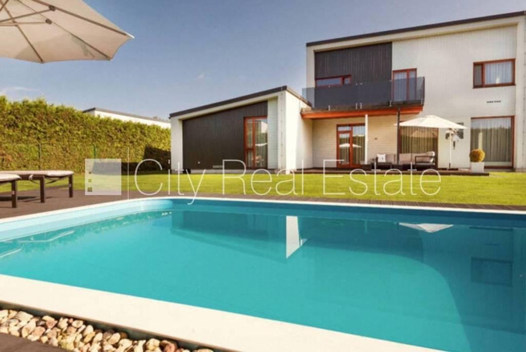 Latvia, Rigas district, Silaraju street. Project - Saliena, well-maintained greened plot of land, indoor courtyard, precinct, garage for two cars, entrance from the street and from the yard, greened area with new trees , terrace , swimming pool, two-storey, rooms isolated 4 piece/es, studio type apartment, hall, gas heating, full decoration, heating floor in bathroom , large show-windows, plastic glass windows, oaken wooden flooring, parquet flooring, flag flooring, several bathrooms, bath, shower stall, build in kitchen unit, built-in wardrobe, television, refrigerator, dishwasher, electric range, oven, washing machine, internet, alarm system , for rent with all in pictures visible equipment, available from may, strategically beneficial location, CITY REAL ESTATE ID - 490948