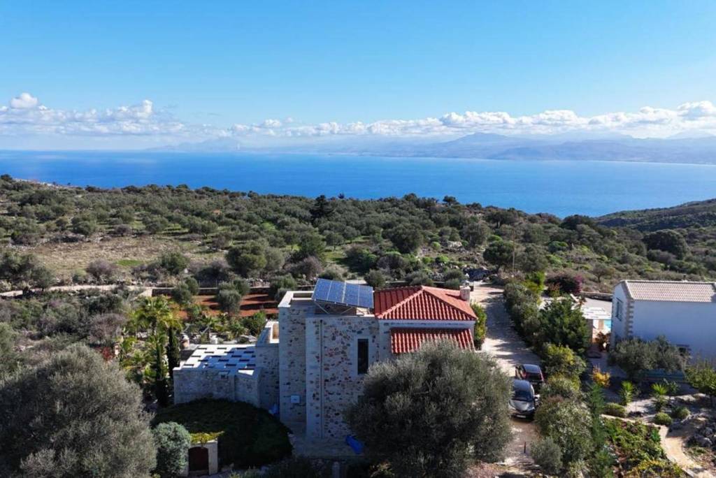 Set in a peaceful and authentic part of Apokoronas, in the area of Palailoni, this distinctive stone-built villa is located within a private plot of 2,194 m2, enjoying unobstructed views of the sea and the White Mountains, as well as a high level of privacy.