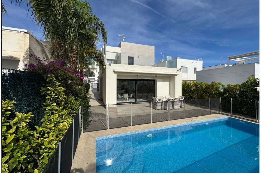With a built area of 125 m² on a private plot of 300 m², the property is distributed over two floors plus a large rooftop solarium, perfect for enjoying the sun and open views all year round. On the ground floor there is a spacious open-plan living-dining room connected to a fully equipped modern kitchen, as well as a master bedroom with dressing room, a full bathroom and a guest toilet, all with direct access to the garden and pool area.