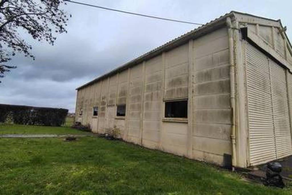 Hangar béton, de 200 m², en bon état, sol dalle béton charges lourdes.<br />Parking macadam, portail metallique, terrain 722 m² constructible.<br />Idéal stockage, parcage de véhicules, activité artisanale legere.<br />Dimensions :<br />Hauteur mini 5 m<br />Hauteur maxi au centre 7,60 m<br />Porte largeur 8,70 x H 4,50 m